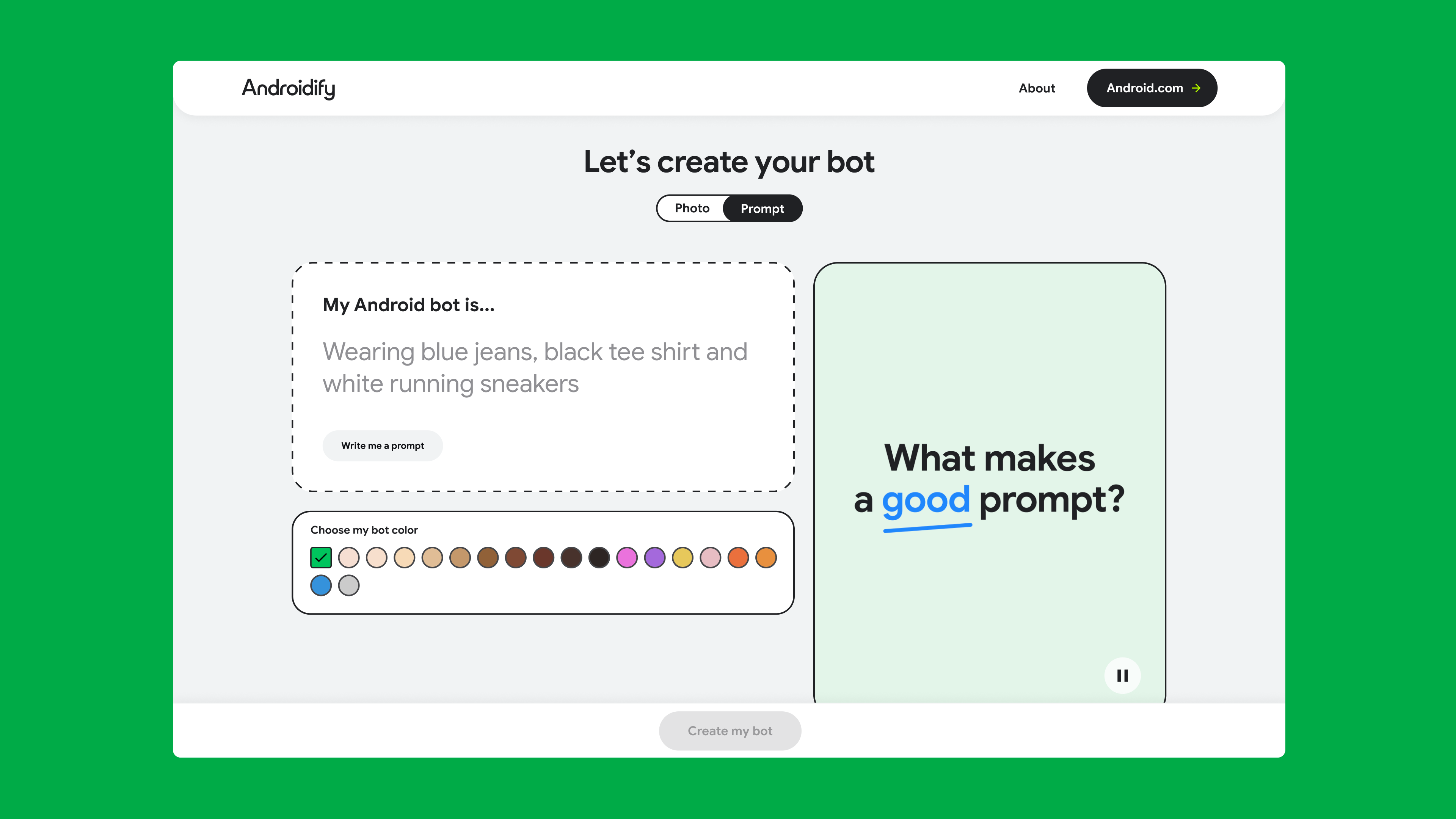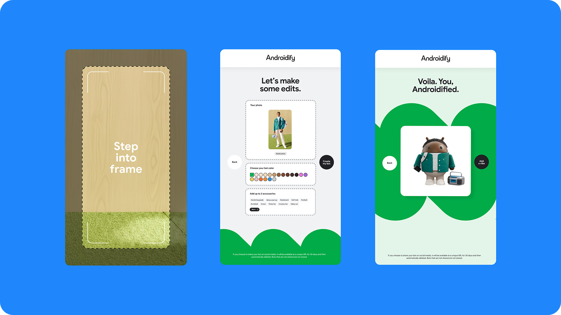 Androidify is an AI-powered tool that lets anyone create their own Android bot — by uploading a selfie or writing a prompt. Rooted in Android’s belief in openness, play, and individuality, it reimagines customization for the age of AI.